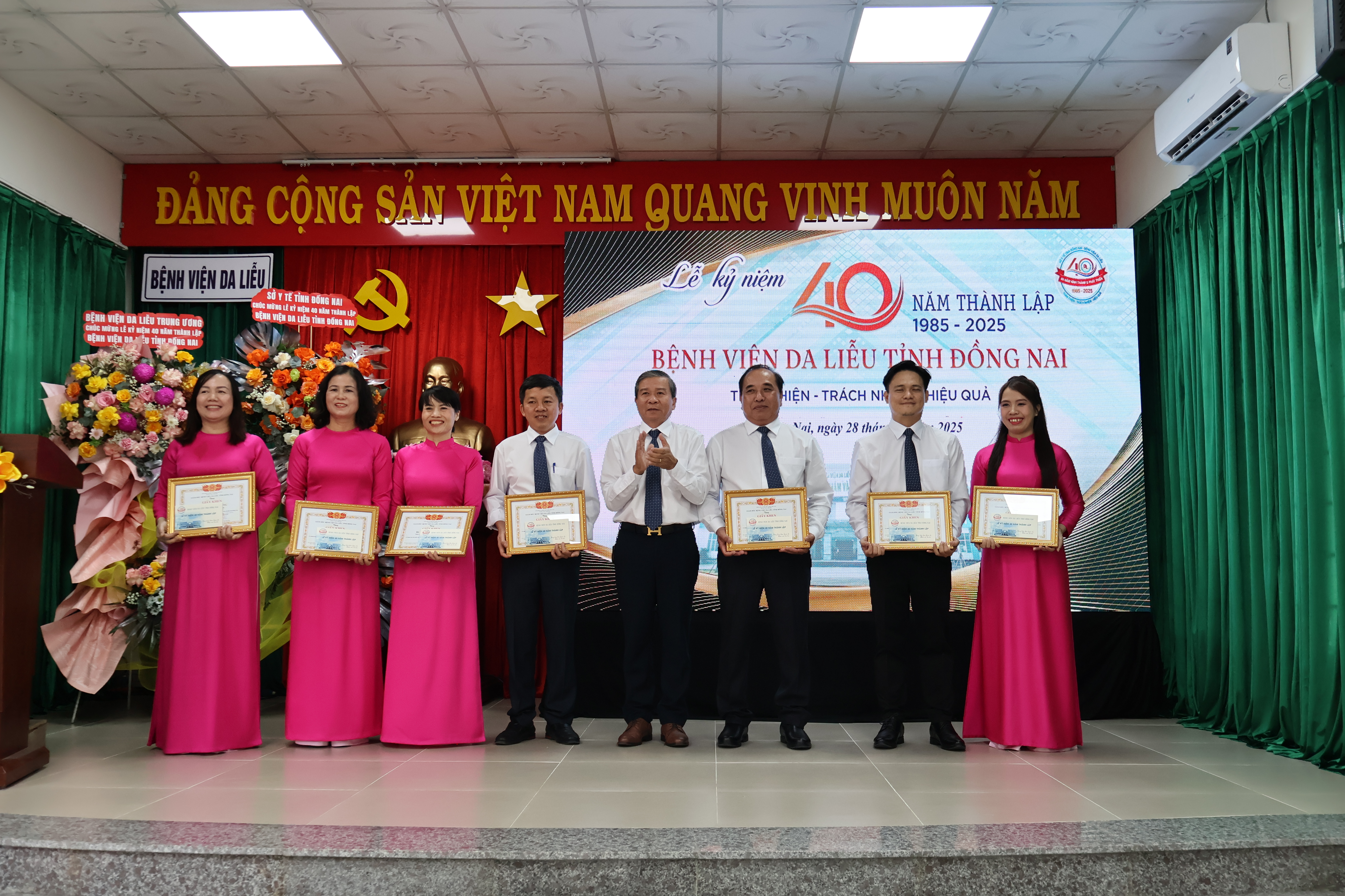 Ngày 28-11 vừa qua, Bệnh viện Da liễu tỉnh Đồng Nai đã tổ chức thành công Lễ kỷ niệm 40 năm Thành lập bệnh viện (30/11/1985 – 30/11/2025). Buổi lễ diễn ra trong không khí trang trọng, ấm áp với sự tham dự đông đủ của quý vị đại biểu cùng toàn thể cán bộ viên chức, người lao động bệnh viện.