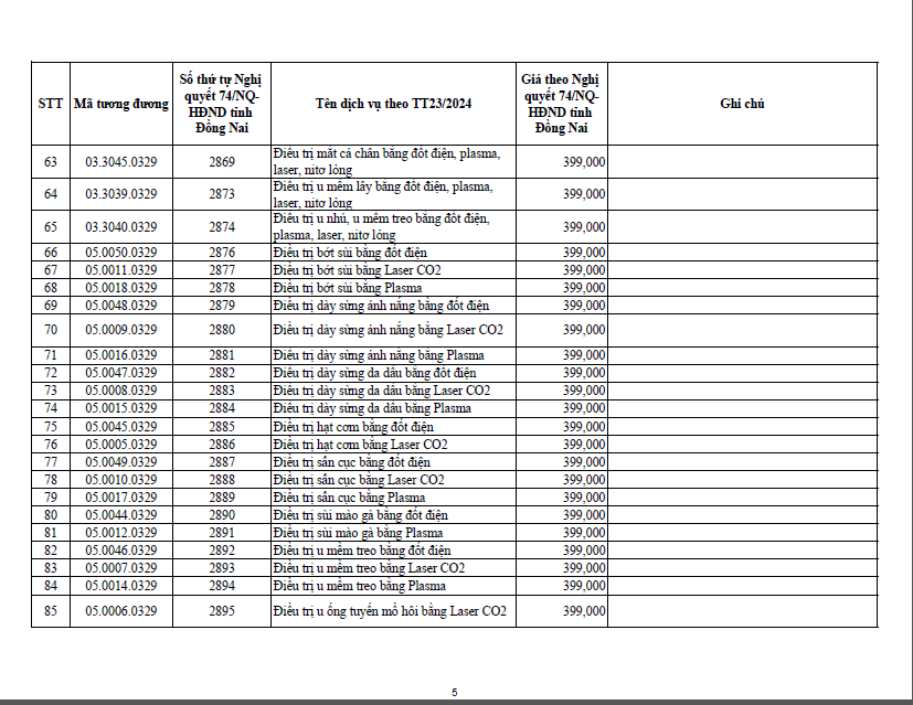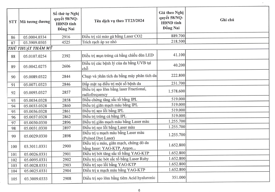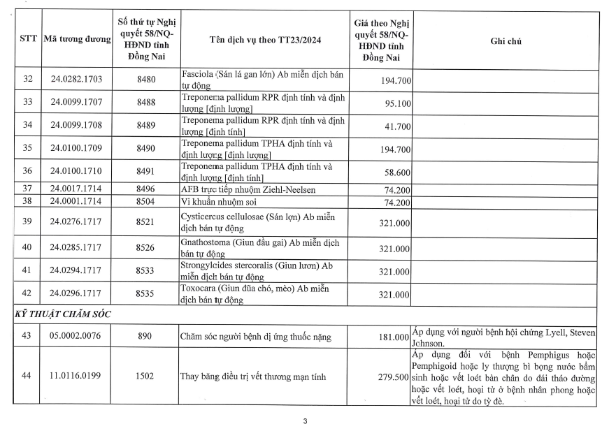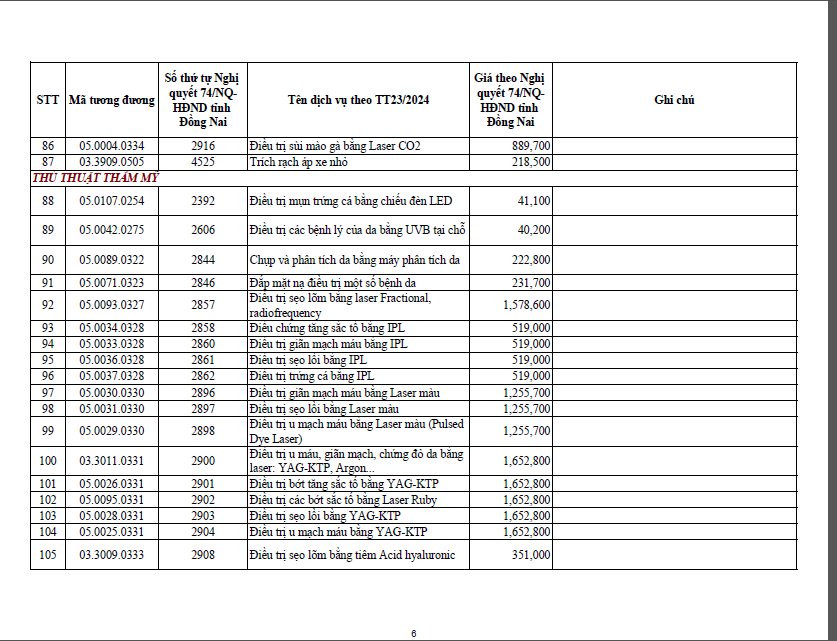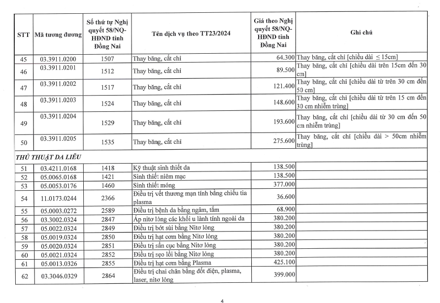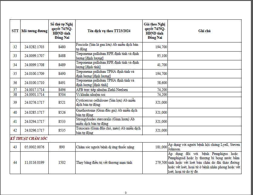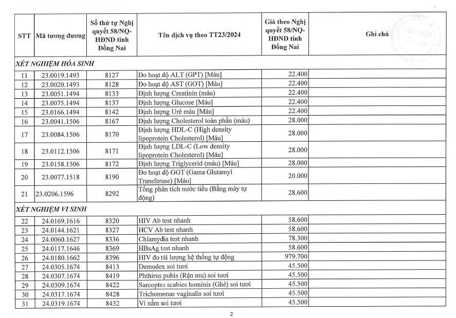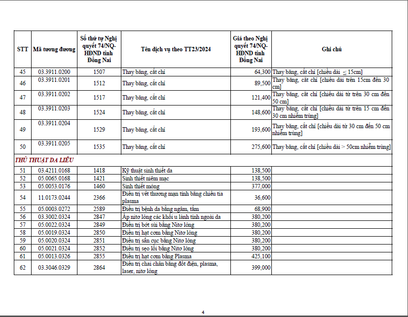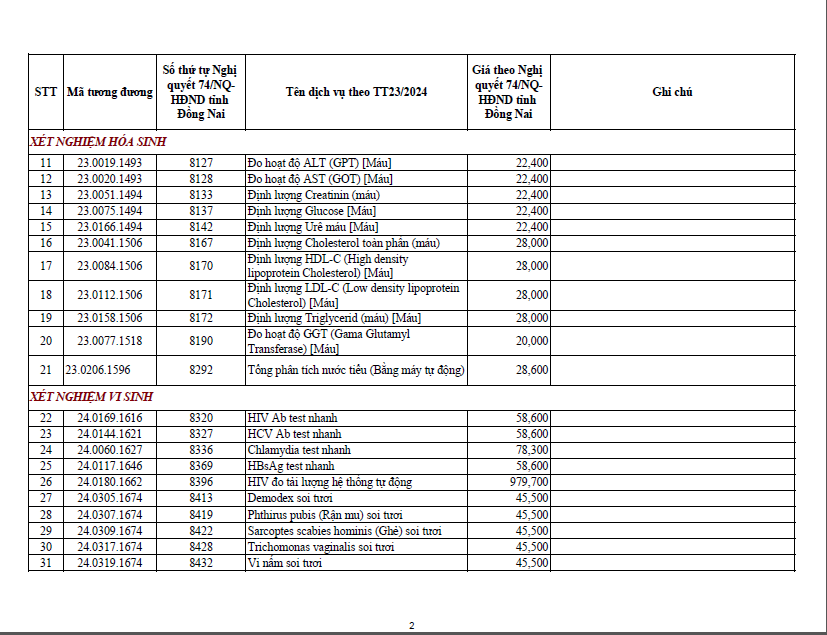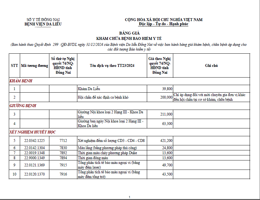 BẢNG GIÁ KHÁM, CHỮA BỆNH BẢO HIỂM Y TẾ