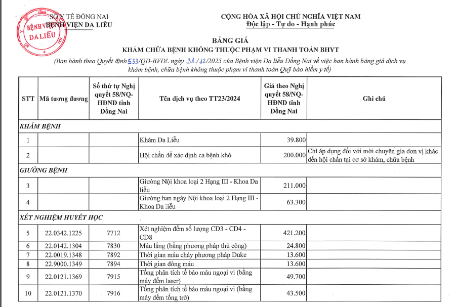 DỊCH VỤ NỔI BẬT Tiêm BAP - giải pháp trẻ hóa da an toàn, hiệu quả và hiện đại Tiêm Filler - Giải pháp làm đẹp an toàn, không phẫu thuật Nâng cơ mặt bằng máy RF – Trẻ hóa làn da an toàn Điều trị Laser nốt ruồi Điều trị các loại sẹo (lồi, lõm, xấu) hiệu quả Điều trị triệt lông bằng công nghệ IPL Điều trị nám - tàn nhang - bớt Ota - cafe Khám và điều trị các bệnh về da liễu TIN NỔI BẬT THÔNG BÁO LỊCH NGHỈ TẾT NGUYÊN ĐÁN 2026 LỄ KỶ NIỆM 40 NĂM THÀNH LẬP BỆNH VIỆN DA LIỄU TỈNH ĐỒNG NAI SINH HOẠT ĐẦU KHOÁ LỚP THỰC HÀNH CHUYÊN KHOA DA LIỄU 9 THÁNG BỆNH VIỆN DA LIỄU TỈNH ĐỒNG NAI THỰC HIỆN XÉT NGHIỆM 64 DỊ NGUYÊN GÂY DỊ ỨNG Bệnh viện Da liễu Đồng Nai ký kết hợp tác với Trường Đại học Y Dược Cần Thơ Bệnh viện Da liễu Đồng Nai khai trương Phòng khám chuyên đề vảy nến Bệnh viện Da liễu Đồng Nai triển khai kỹ thuật cao trong chăm sóc, trẻ hóa da Bệnh viện Da liễu Đồng Nai thực hiện các dịch vụ làm đẹp an toàn, hiệu quả